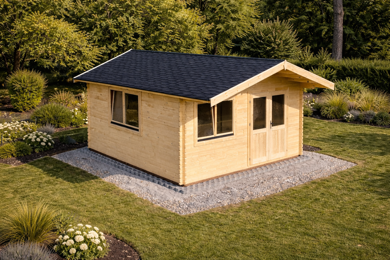 With a generous internal layout and a large 22.2m² floor area, this log cabin offers plenty of room for furniture, storage, and multi-use setups. The cabin’s strong timber construction, solid roof structure, and heavy-duty floor supports make it an excellent choice for long-term outdoor use in UK weather conditions.